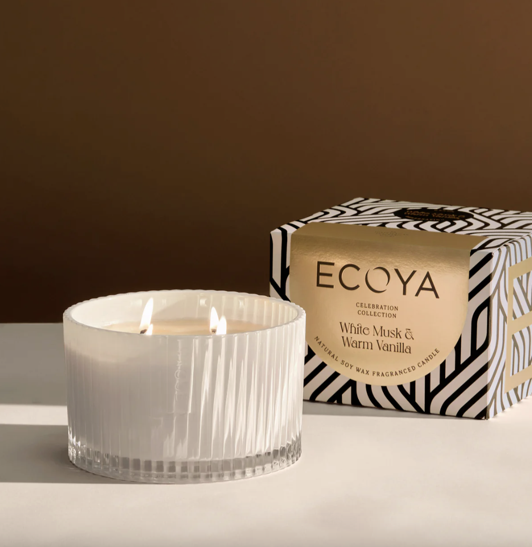 The impressive Grand Celebration natural soy wax candle comes housed in a sophisticated and deco inspired cut glass vessel, featuring four wicks and a burn time up to 90 hours. The luxurious Grand Celebration Candle is fragranced in the Celebration Collection fragrance, White Musk and Warm Vanilla