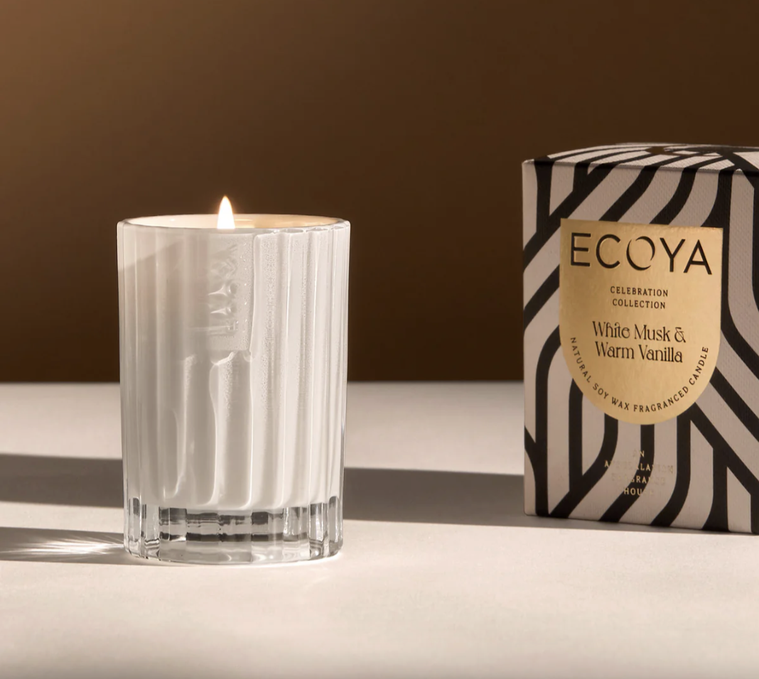 A miniature replica of the Celebration Candle. Natural soy wax is delicately poured into a sophisticated and deco inspired cut glass vessel. Fragranced in White Musk and Warm Vanilla, the Mini Celebration Candle has a burn time of up to 35 hours.